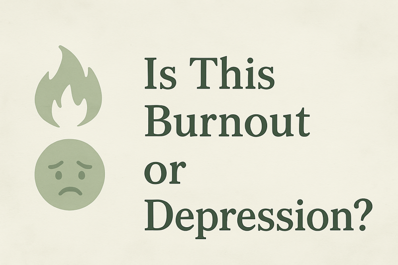 Burnout and depression can share symptoms: exhaustion, irritability, brain fog, trouble sleeping, and feeling disconnected. But burnout is typically situation-based — a reaction to demands. Depression lingers even when life gets easier.